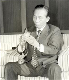 감을 깎고 있는 박정희 전 대통령. 이 사진은 최근 한 인터넷 경매 사이트에 매물로 올라 화제가 되기도 했다.
