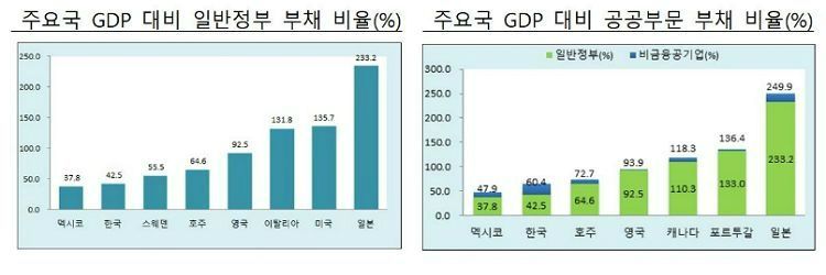 그럼에도 233%인 일본이나 136%인 미국은 물론, OECD 회원국 평균인 115%에 비해서도 크게 낮은 수준이다. 재정 지출 여력이 충분하단 근거다.