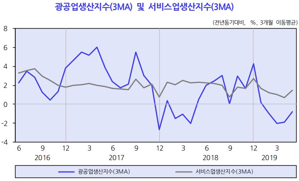 KDI 관계자는 "제조업 출하도 내수와 수출 모두 감소했고 재고율은 높은 수준을 이어가고 있다"며 "동행지수와 선행지수 순환변동치도 기준보다 낮은 수준을 지속하는 등 전반적인 경기 부진이 계속되고 있다"고 설명했다.