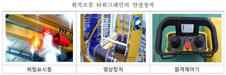 타워크레인을 원격조종하는 경우 사각지대로 인한 위험상황과 장비결함 등을 쉽게 인지할 수 있도록 위험표시등·영상장치·원격제어기 등 안전장치도 반드시 장착하게 했다.