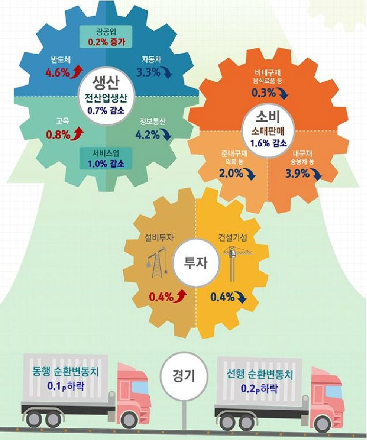 설비투자가 기저효과로 한 달만에 반등했지만 생산과 소비 등 모든 산업지표가 일제히 감소세를 기록했다.