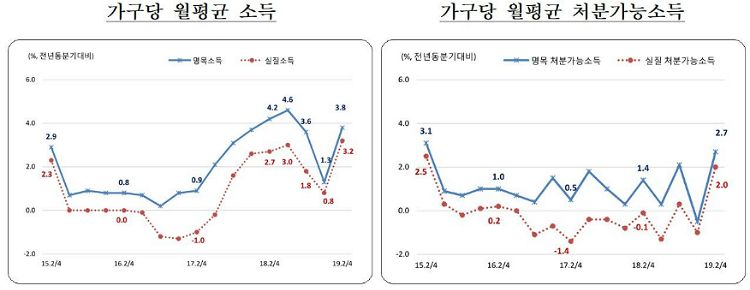 1분위 근로소득 감소에 대해선 "1인 가구를 중심으로 근로소득이 두자릿수 이상 굉장히 큰 폭으로 증가하고 있다"며 "이번 조사 대상인 2인 가구에 자영업황 부진이 반영된 결과로 볼 수 있다"고 덧붙였다.